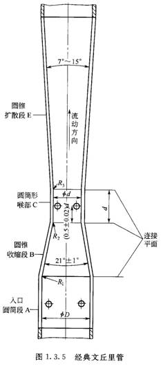 經(jīng)典文丘里管的軸向截面如圖1.3.5所示。經(jīng)典文丘里管由以下部分組成: