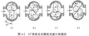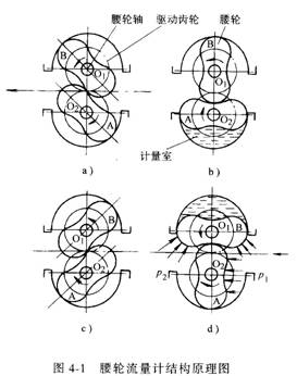 腰輪流量計的工作原理可以從圖4-1中的4個過程來分析。