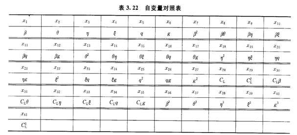 以表3.22中對(duì)應(yīng)的自變量代入上式中各Xi值后得