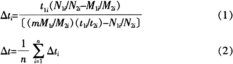 其中,由于通用計數(shù)器每次閥門“啟→停”得到的時間為1次時間間隔,因此,10次斷續(xù)試驗時的測量總時間t 2i 由10次“啟→停”時間間隔累加得到,源數(shù)據(jù)如表2所示。
