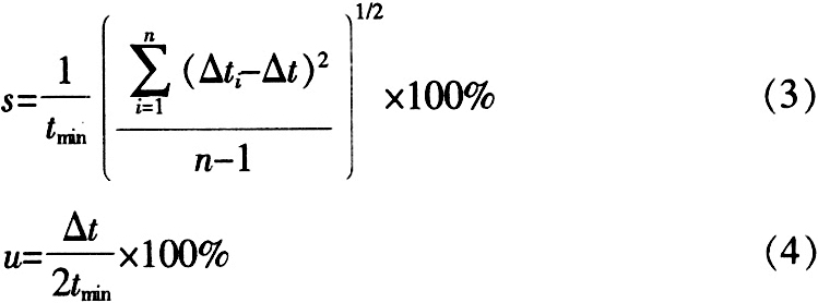 然后結合裝置最短測量時間t min計算出閥門的A類不確定度s 和B類不確定度u ,如式(3)、式(4)所示: