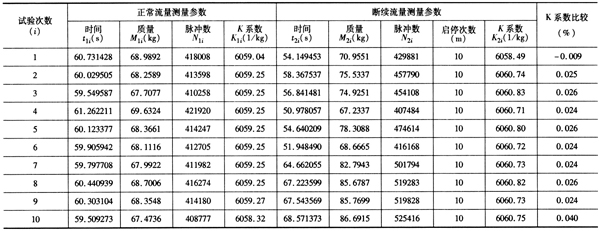 通常的帶換向器的液體流量裝置的檢定,由于換向器一般是帶有電信號的,因此檢定相對簡單,但是在檢定啟停法的裝置時,啟停效應的高精度測量通常難以實現(xiàn)。從這次試驗結果看,通過這個方法可實現(xiàn)液體流量裝置啟停效應的高精度檢定,也可以作為在使用流量裝置或建設流量裝置時對閥門啟停特性的一個高精度的驗證方法,同樣也適用于各種類型流量計的K系數(shù)啟停影響試驗分析。