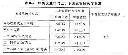 1)它是一種速度式流量計,旋渦分離的穩(wěn)定性受流速分布影響,按上游不同形式阻流件,應(yīng)配置足夠長的直管段,才能保證測量精確度。不少專家認為,它對直管的要求不會比節(jié)流裝置低;