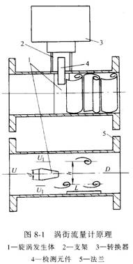 7)質(zhì)量型渦街流量計,應(yīng)用旋渦發(fā)生體的阻力特性或旋渦強度與介質(zhì)密度有關(guān)的原理,測量旋渦發(fā)生體前后差壓或旋渦信號幅值與旋渦頻率,綜合得出質(zhì)量流量的儀表。