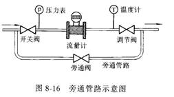 為了不斷流地檢查與清洗傳感器,一般應(yīng)設(shè)置旁通管道,如圖8-16所示。