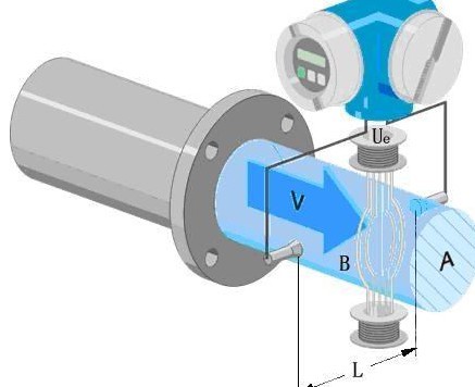B-磁通密度;D-丈量管內(nèi)徑;V-流量信號(hào)(電動(dòng)勢(shì));U-液體均勻軸向流速