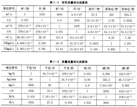 在SI單位制中,體積流量的單位為米3/秒(m3/s);質(zhì)量流量的單位為千克/秒(kg/s)。