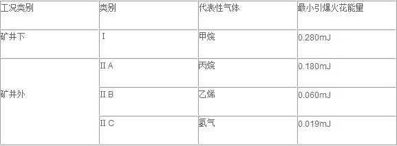 II為除礦井以外的場(chǎng)所使用的電氣設(shè)備(II類電器設(shè)備又分為:IIA、IIB、IIC三個(gè)類別)。
