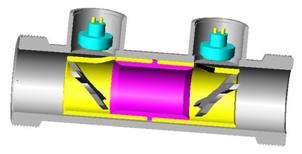 特點(diǎn):靠超聲波順?biāo)湍嫠畟鞑サ臅r(shí)間差來測(cè)水量。適合用于小口徑熱量表。是目前小口徑熱量表的主流結(jié)構(gòu),壓損較低。