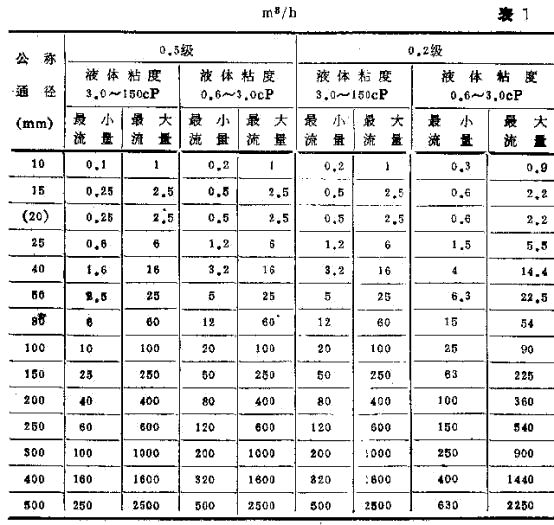 檢定流量計(jì)時(shí)的流量范圍應(yīng)符合表1的規(guī)定.