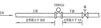 (1)閥門位置和直管段長度。一般來講,把旋渦流量計安裝在閥門的上游(見圖1)。