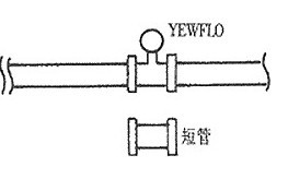(1)設(shè)計流量計的安裝管道時,應(yīng)設(shè)計旁路管道,方便拆卸、維修和調(diào)試。新安裝的管道或維修過的管道,運行前應(yīng)沖洗掉管內(nèi)的鐵銹、水垢渣和污泥。如沒有旁通管,可暫裝短管來代替流量計(見圖5)。