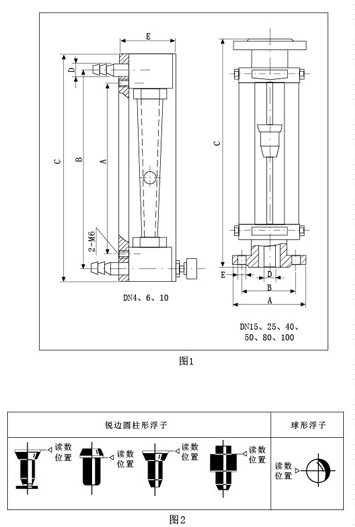 流量計(jì)中浮子讀數(shù)位置按圖2所示:
