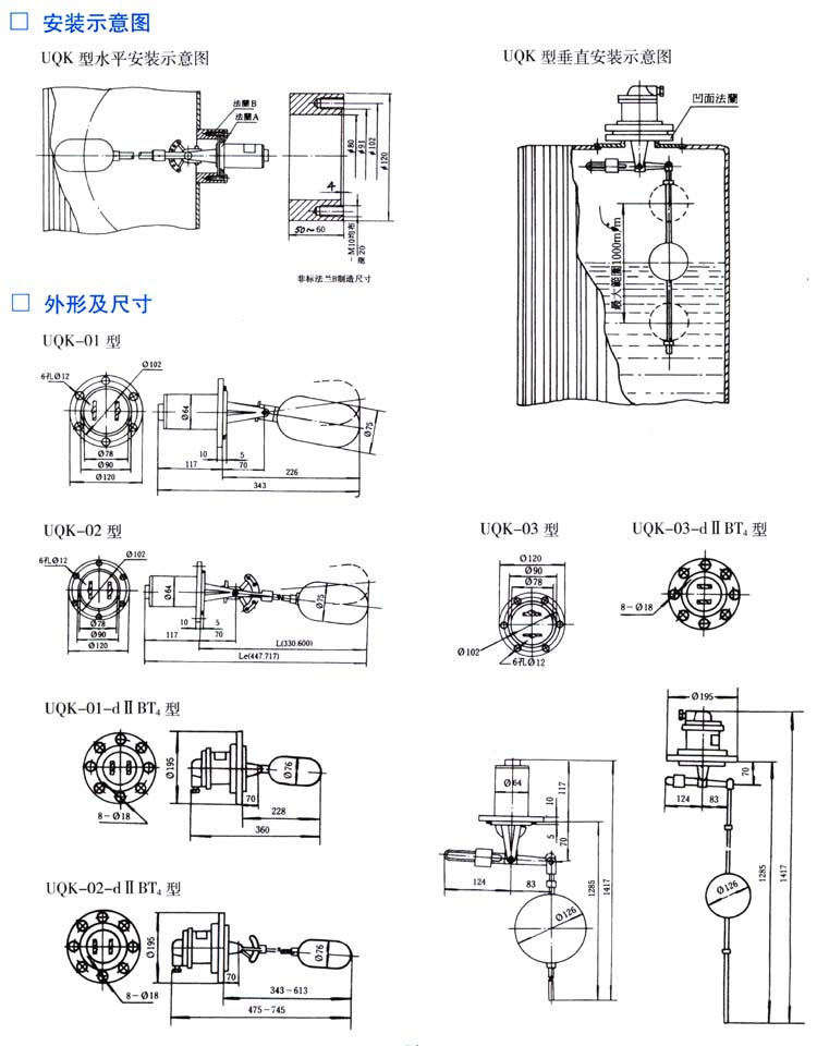 UQK-01、UQK-02、UQK-03型浮球液位控制器適用于對(duì)各種容器內(nèi)液